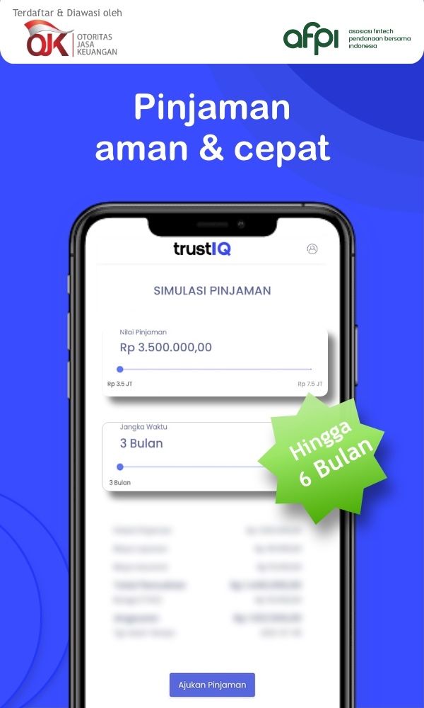Pinjaman Online TrustIQ adalah solusi cepat dan fleksibel untuk membantu Anda memenuhi kebutuhan keuangan mendesak Anda. Dengan proses pengajuan yang sederhana, suku bunga yang transparan, dan layanan pelanggan yang responsif, TrustIQ membuat pemberian pinjaman menjadi mudah dan dapat diandalkan. Namun, seperti semua pinjaman, pastikan Anda mengevaluasi situasi keuangan Anda sebelum mengambil keputusan. Penting untuk meminjam dengan hati-hati untuk memastikan Anda tidak melebihi kemampuan Anda untuk membayar kembali.